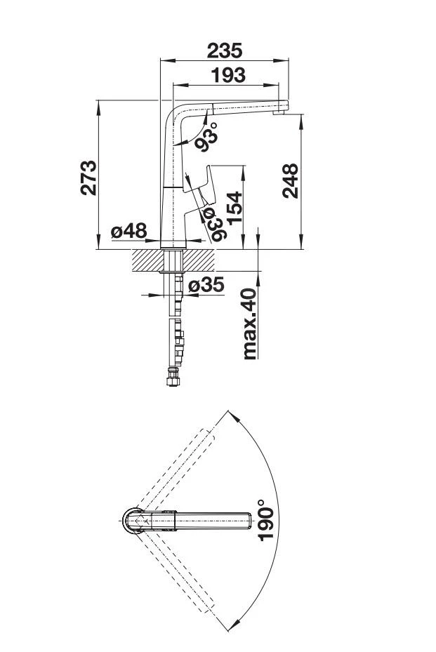- brazo giratorio, rango de rotación 190°