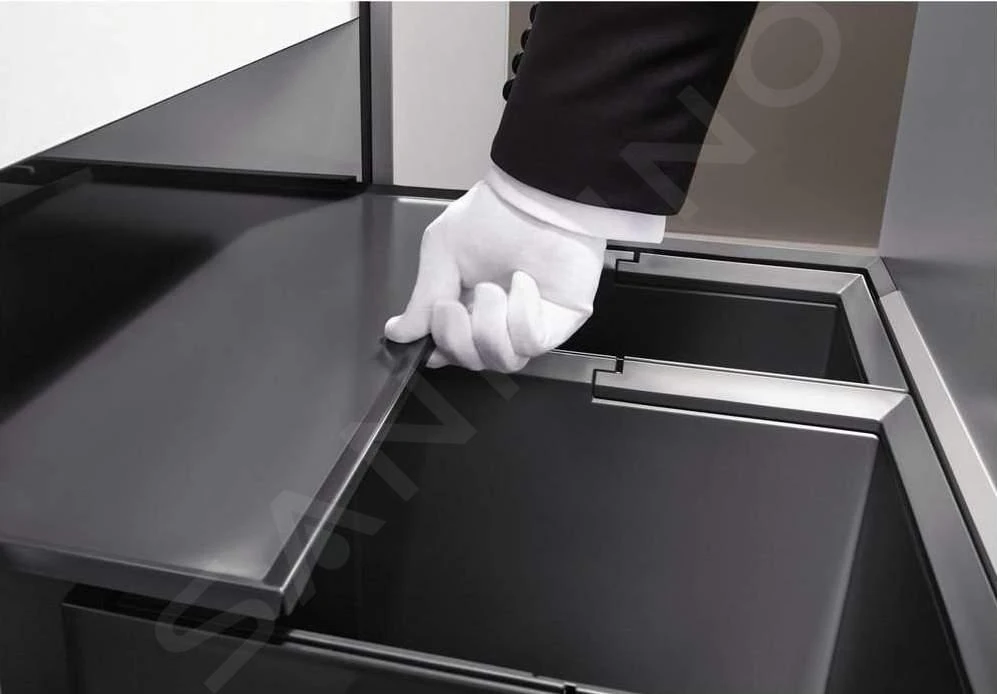 El conjunto también incluye una práctica tapa. Este cubo empotrable Blanco Flexon II está fabricado en plástico de alta calidad y bajo mantenimiento. También es estable y se fabrica con precisión. Es fácil de montar y encaja perfectamente en el armario inferior de tu cocina. Es muy importante que lo encajes en un mueble con una anchura de cajón de 600 mm y una profundidad de 400 mm. La altura de montaje del cubo es de 360 mm por encima del fondo del cajón, la altura máxima del lateral del cajón debe ser de 265 mm por encima del fondo. Al planificar la altura del cubo, hay que tener en cuenta también la altura del fondo del mueble, la profundidad de instalación del fregadero, incluido el accesorio de desagüe, y la altura mínima resultante del cubo.