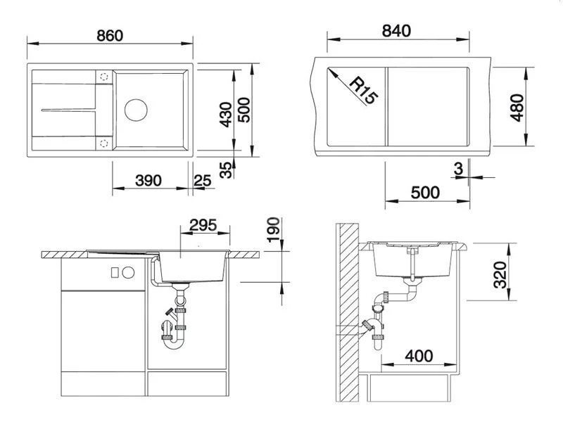 - dimensión del fregadero 390 x 430 mm