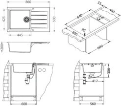 Alveus Cadit – Fregadero De Granito 860×500 Mm, Con Control De Desagüe, Arctic 1132027
