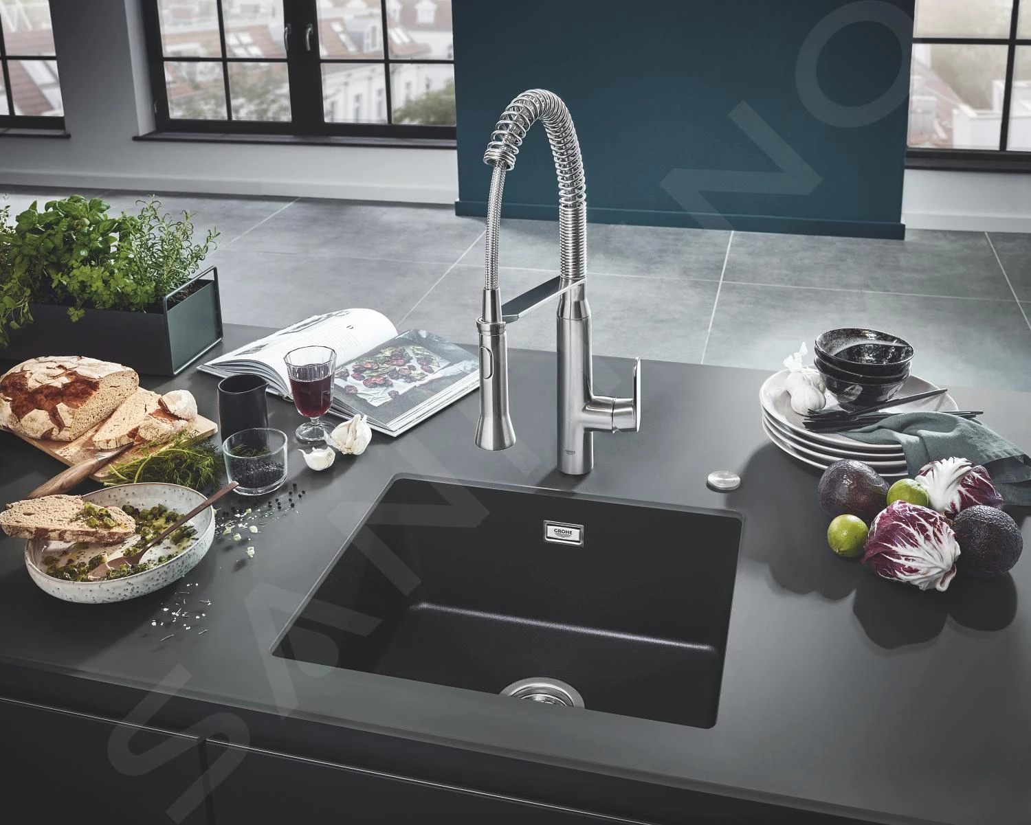 Este grifo de cocina GROHE mejorará el flujo de trabajo en su cocina. Su funcionalidad ha sido diseñada basándose en estándares proporcionados por expertos. Incluye una ducha profesional que es posible girar 360° y ofrece una selección de chorros de ducha suaves o fuertes. Gracias a su amplio alcance, llenar o enjuagar ollas o limpiar el área de trabajo será más fácil que nunca. El caño alto giratorio aporta incluso más a esta practicidad. A pesar de toda esta avanzada funcionalidad, la instalación de un Grifo de fregadero es muy sencilla, gracias a nuestro sistema de instalación. Además, la superficie brillante GROHE StarLight conservará su brillo incluso después de muchos años de uso intensivo. ¡La elección perfecta para su cocina!