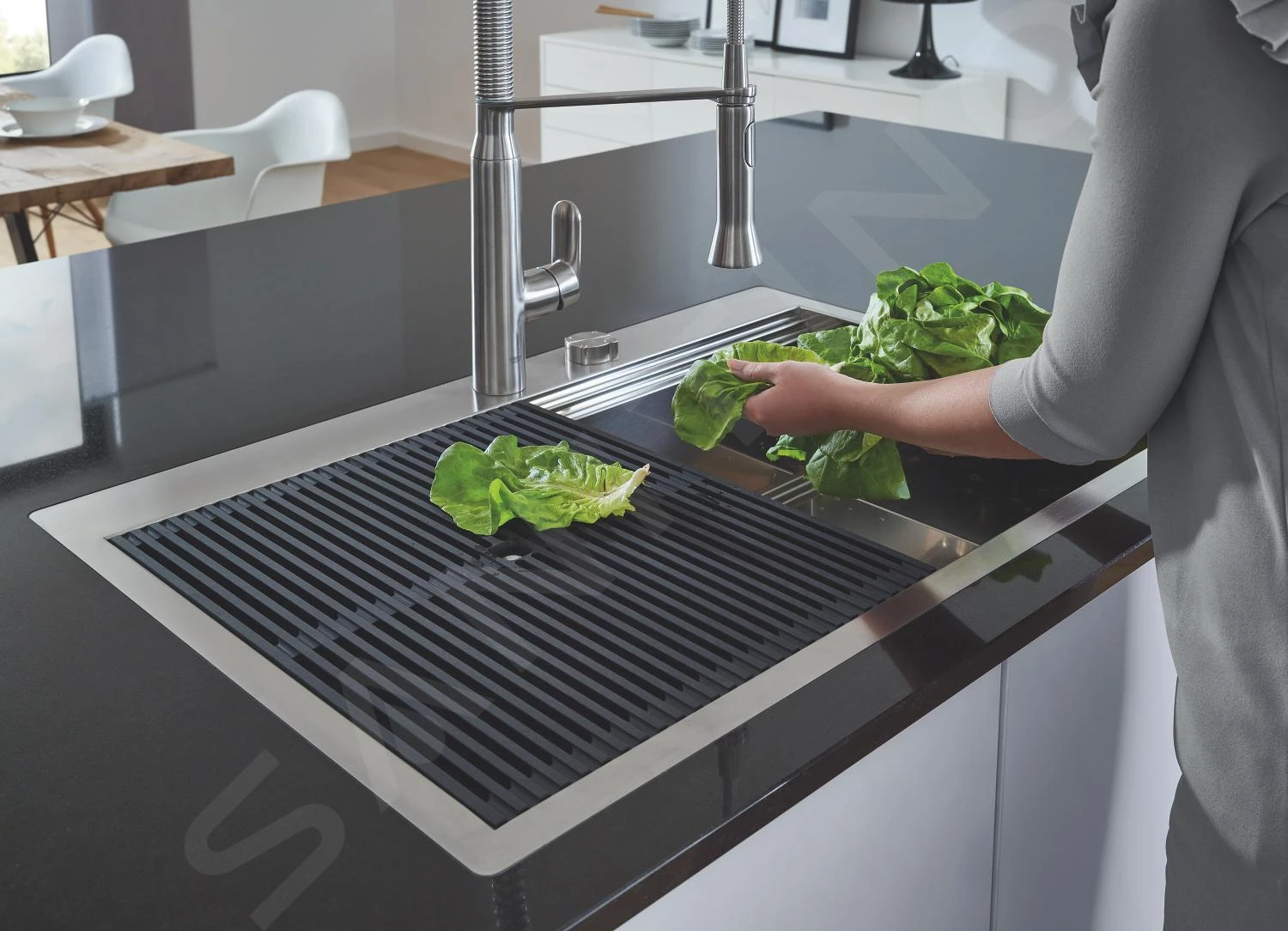 El grifo de cocina GROHE K7 te impresionará a primera vista. Su imaginativo diseño encaja perfectamente tanto en cocinas modernas como clásicas. Además, el acabado en supersteel añade un toque de originalidad y confianza. La resistencia mecánica de las superficies se ve reforzada por la tecnología GROHE StarLight, que dificulta la acumulación de cal y suciedad. Así, el grifo conservará su aspecto deslumbrante durante mucho tiempo.