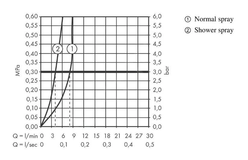 - max. caudal: 8,2 l/min (presión 3 bares)