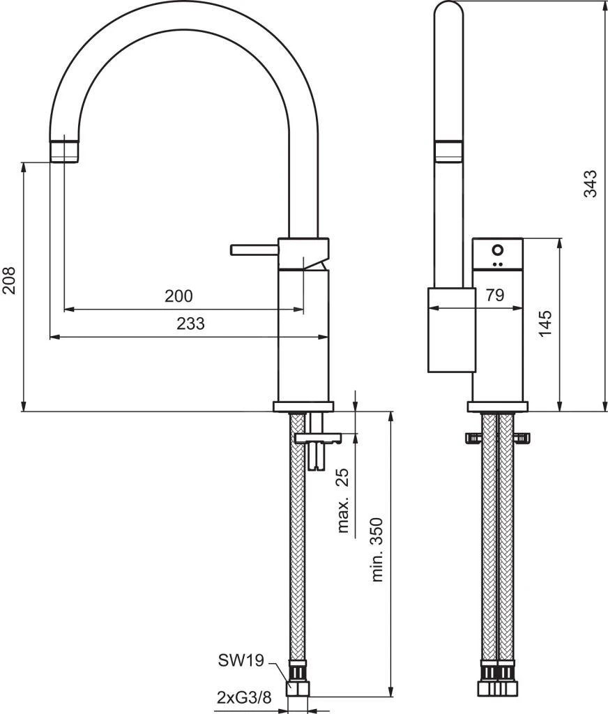Grifo monomando de cocina con brazo giratorio y aireador oculto