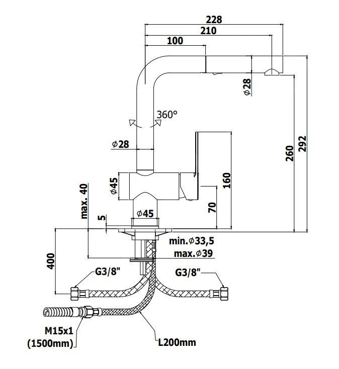 - altura de grifo: 292 mm